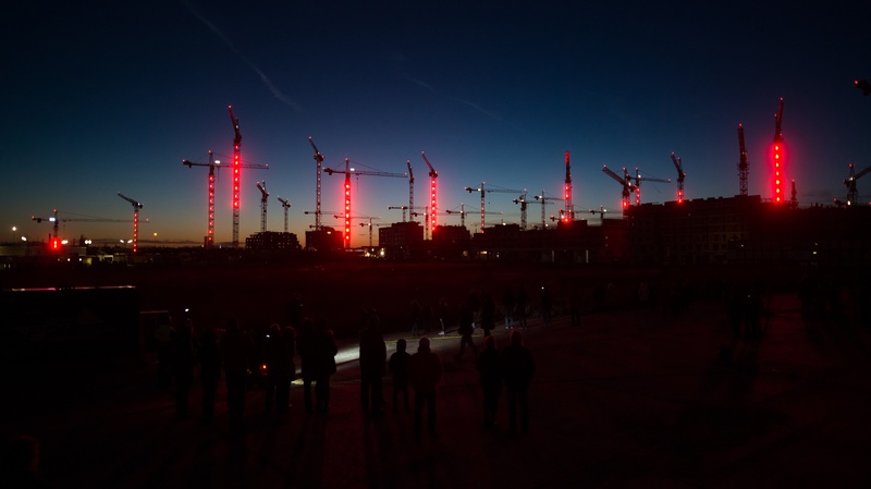 Kranensee KRANENSEE was an audio-visual and kinetic performance at the largest urban development venture ever in Vienna and one of the largest in Europe. At the time of the performance there were 40 cranes located on the construction site. Aspern is a location with an eventful history. The concept of the ... > show