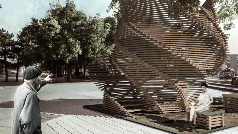 VOLCANO The VOLCANO is a temporary pavilion, bringing together people under the attention of urban development. The pavilion follows in concept and shape the characteristics of a volcano. The pavilion erupts at different locations in the city and uncovers hidden topics and events. VOLCANO is the symbol standing for renewal and ... > show